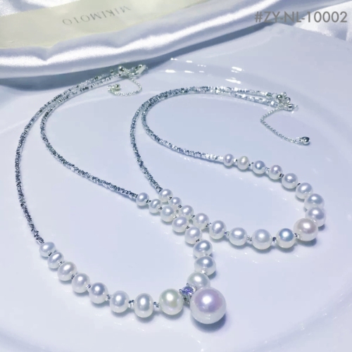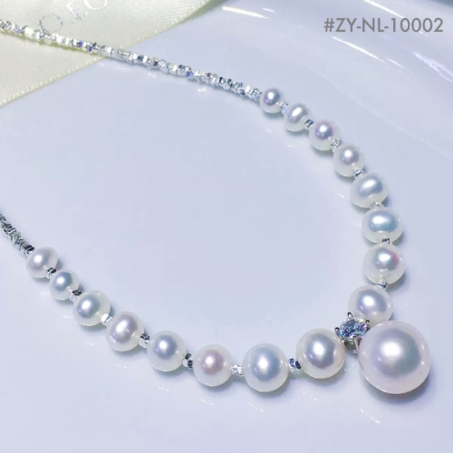 Freshwater Cultured Pearl Princess Necklace/Mixed Sizes Pearls with Crushed Silver Necklace