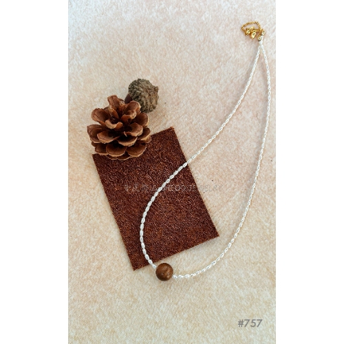Single Brown Huanghuali Wood Bead and Rice Pearls Necklace