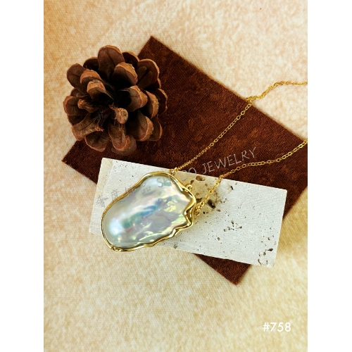 Freshwater Cultured Baroque Pearl Necklace/ Baroque Pearl Pendant Necklace/ Golden Chain Necklace