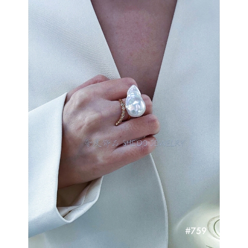 Freshwater Cultured Baroque Pearl Ring/ Baroque Pearl & CZ Ring/ One-Size Open Ring
