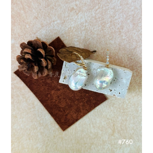 Freshwater Baroque Pearl Earrings/ Freshwater Baroque Pearl & CZ Earrings