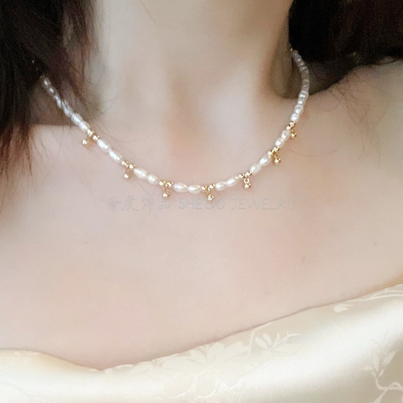 The "Golden Sprinkle" Pearl Choker | Dainty Layering Necklace