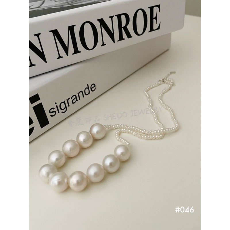 This necklace features a stunning row of Edison Freshwater Pearls, hand-selected for their impressive size and mirror-like luster. Arranged in a graduated "Smile" silhouette, the pearls start smaller at the sides and swell to a magnificent center, creating a perfect arc that rests on the collarbone.