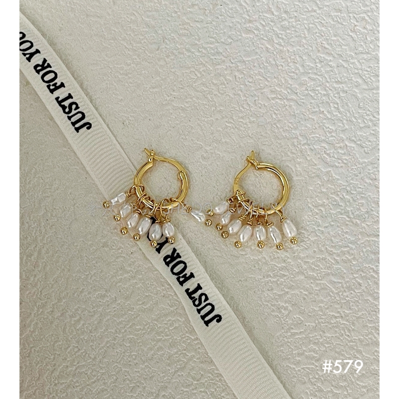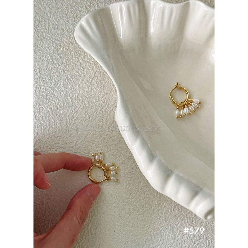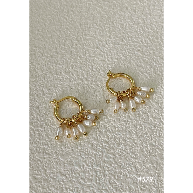These huggie hoops feature a cluster of tiny freshwater pearls that mimic the movement of rain. They offer a playful yet sophisticated alternative to the traditional pearl stud.