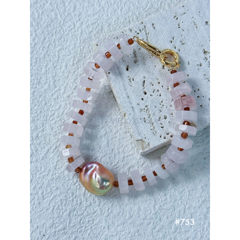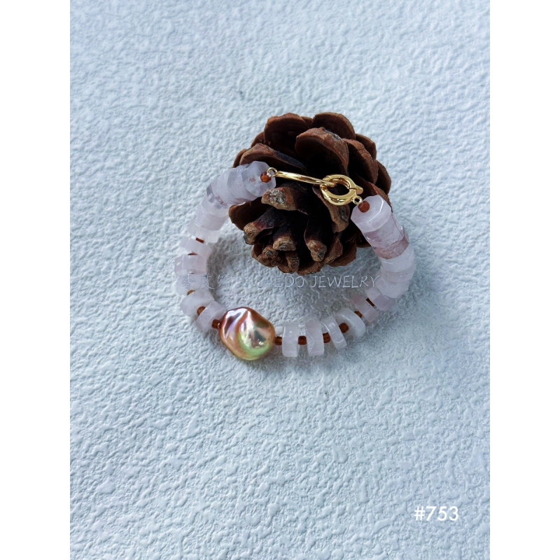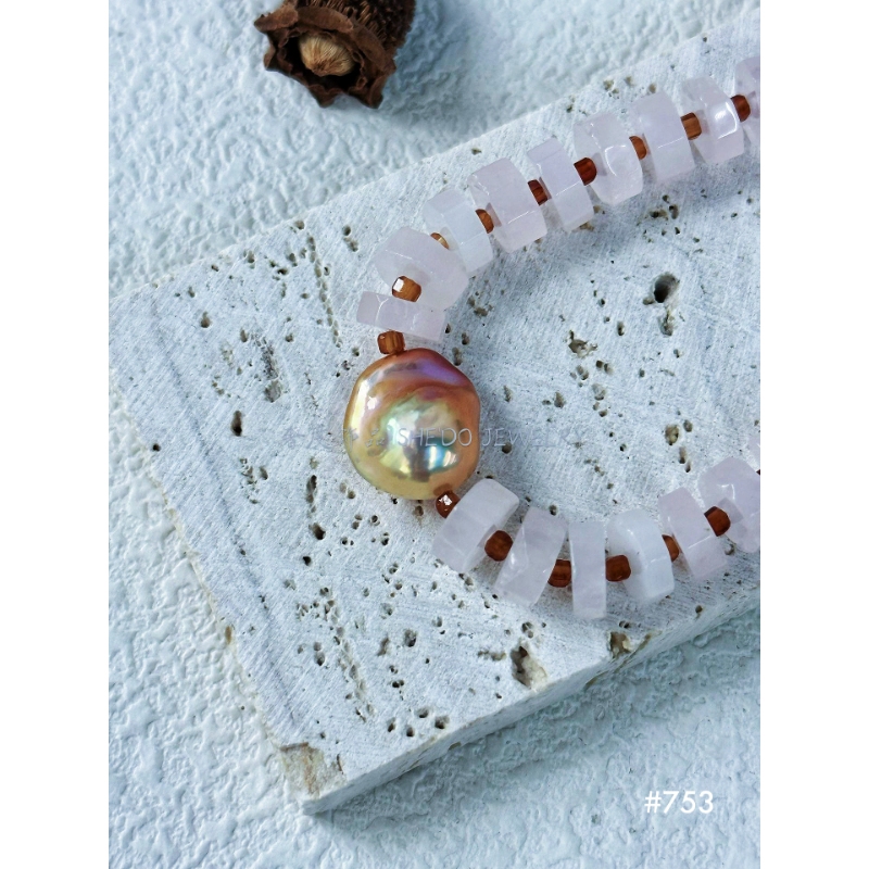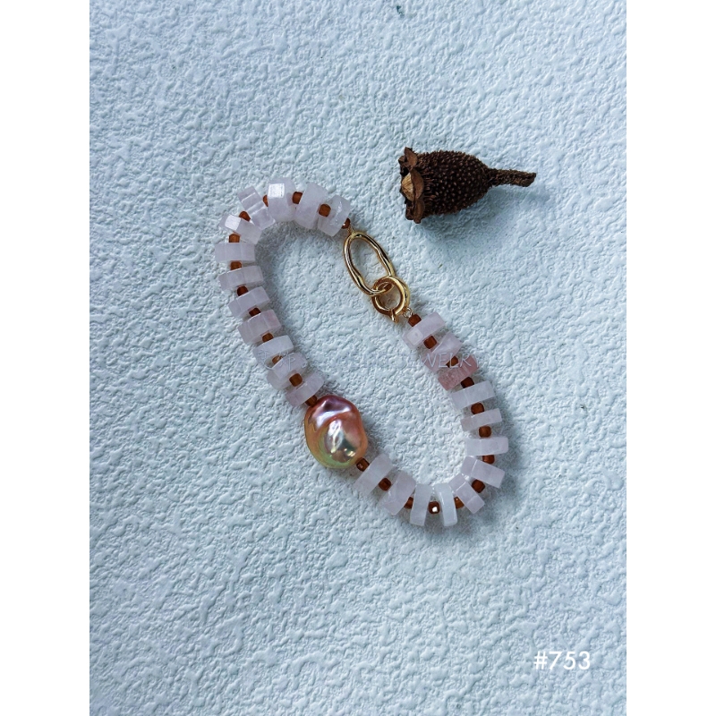 Gemstones: Rose Quartz + Baroque Pearl.