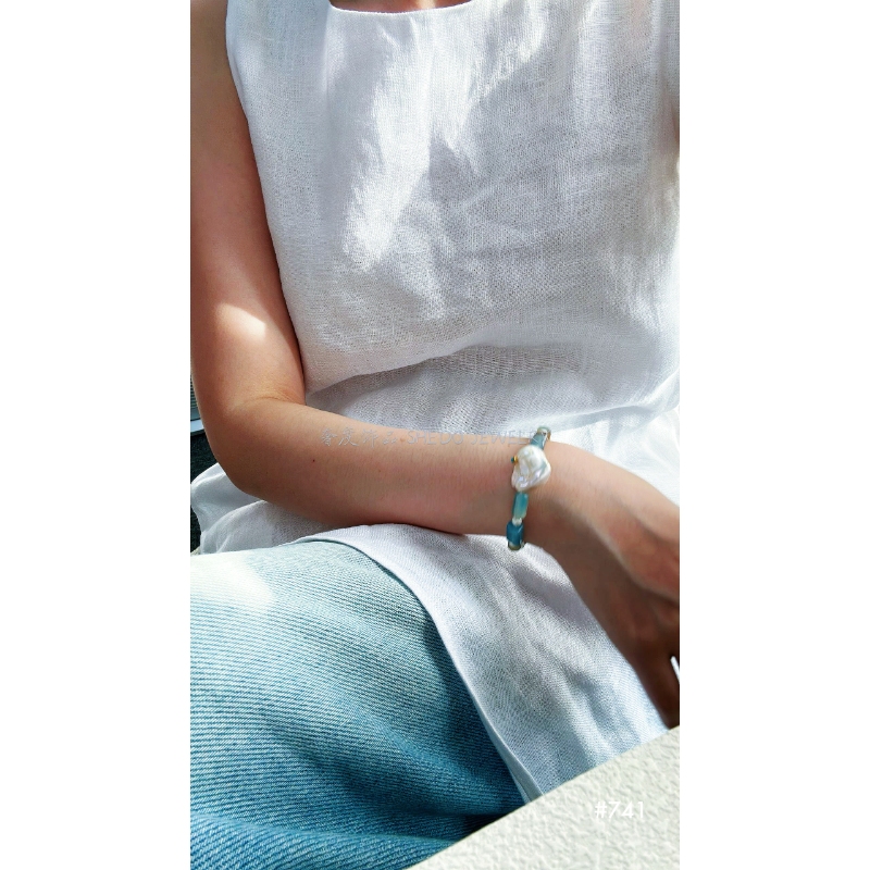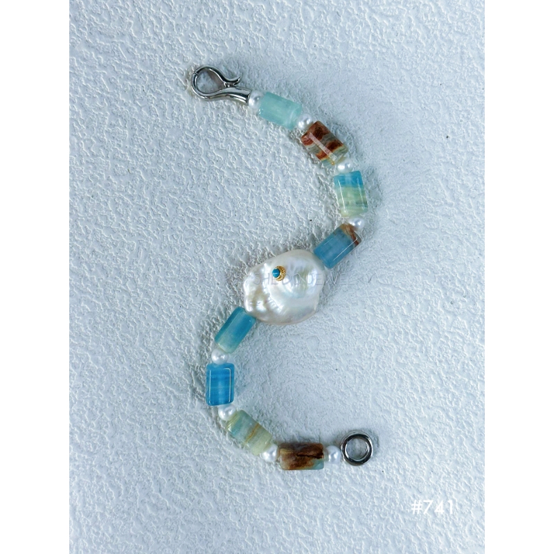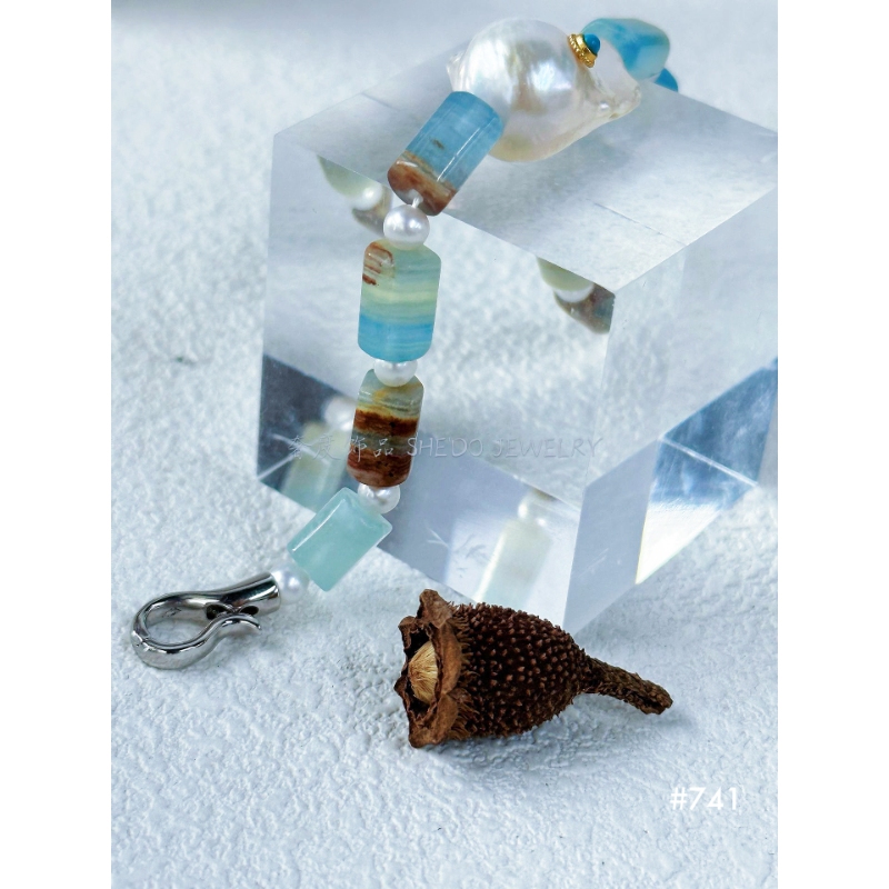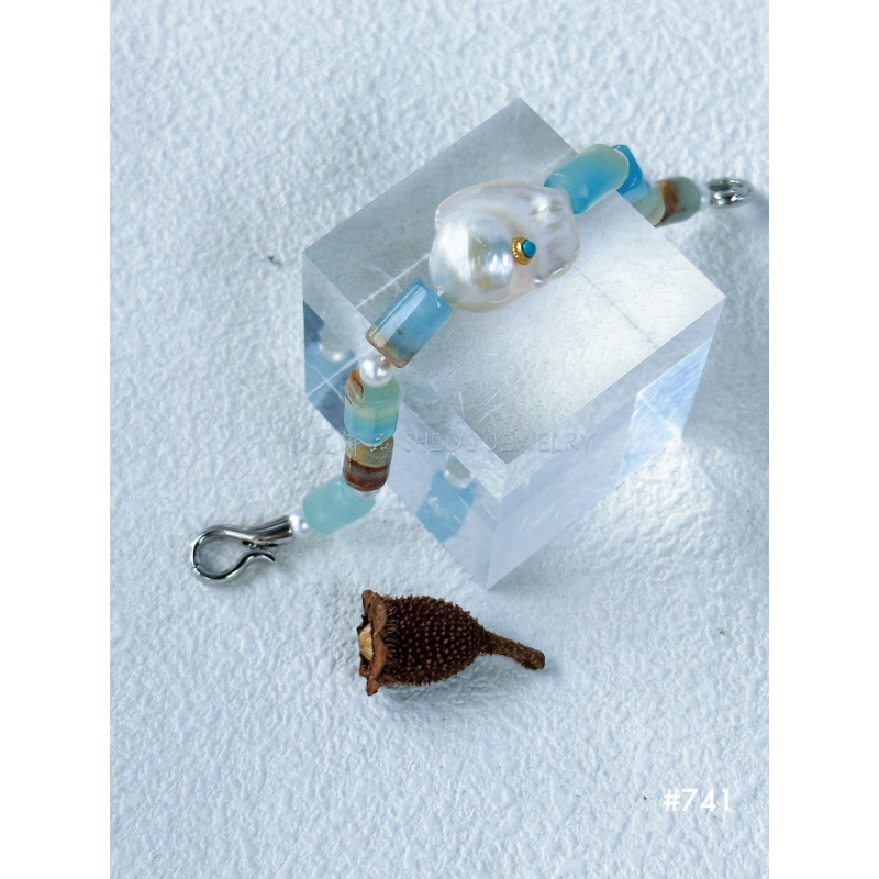 Designed to match our Aegean Choker, this bracelet features the same Raw Turquoise cylinders and a lustrous Baroque Pearl accent. The cool touch of Sterling Silver makes it the perfect summer accessory that feels fresh and light.