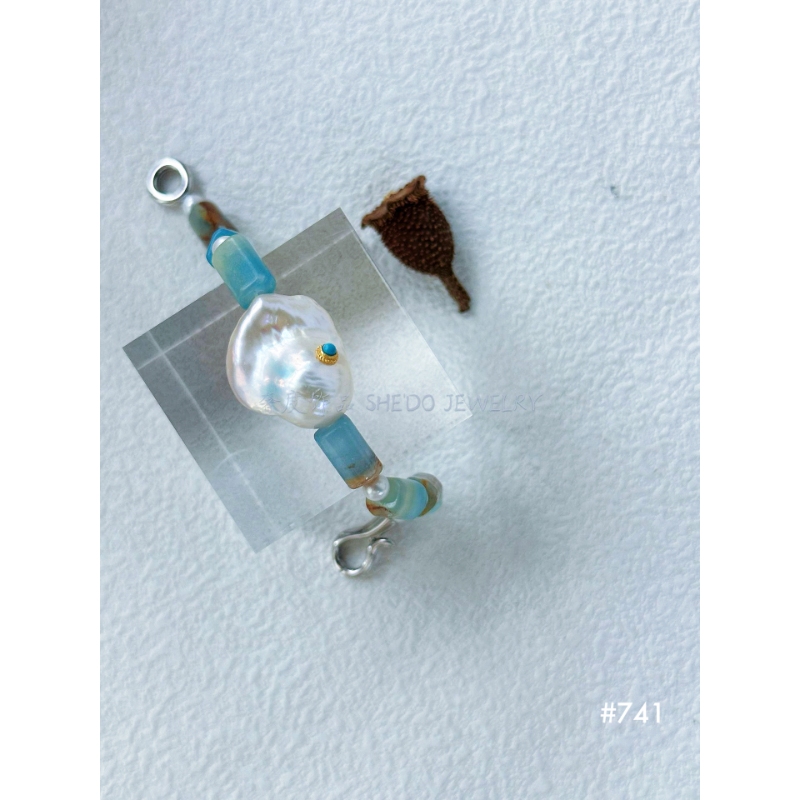 Gemstones: Raw Turquoise + Baroque Pearl.