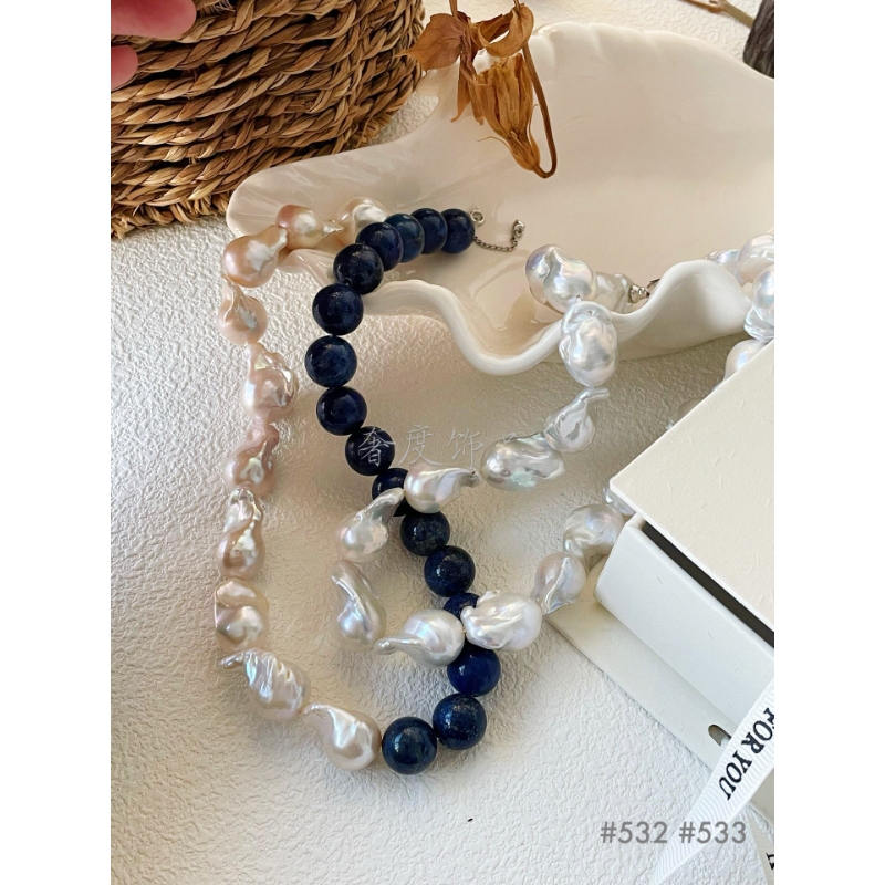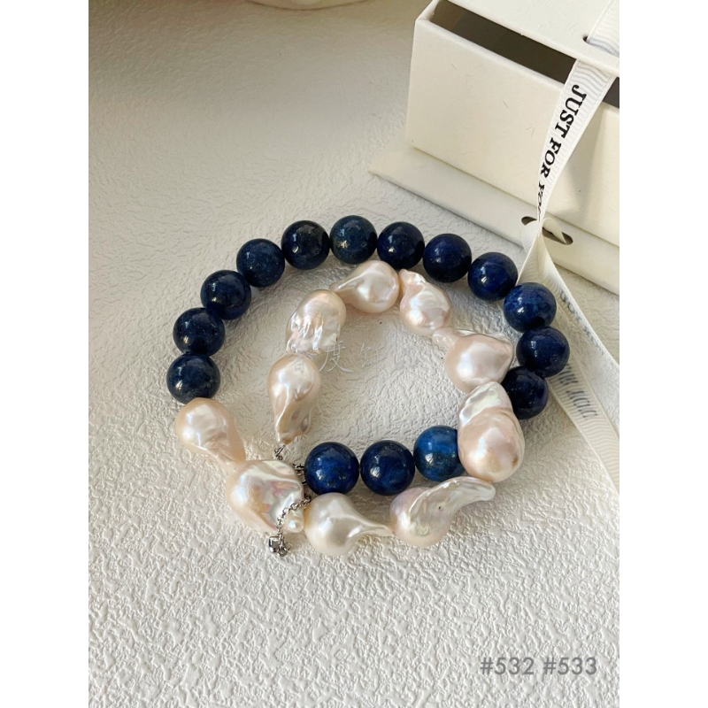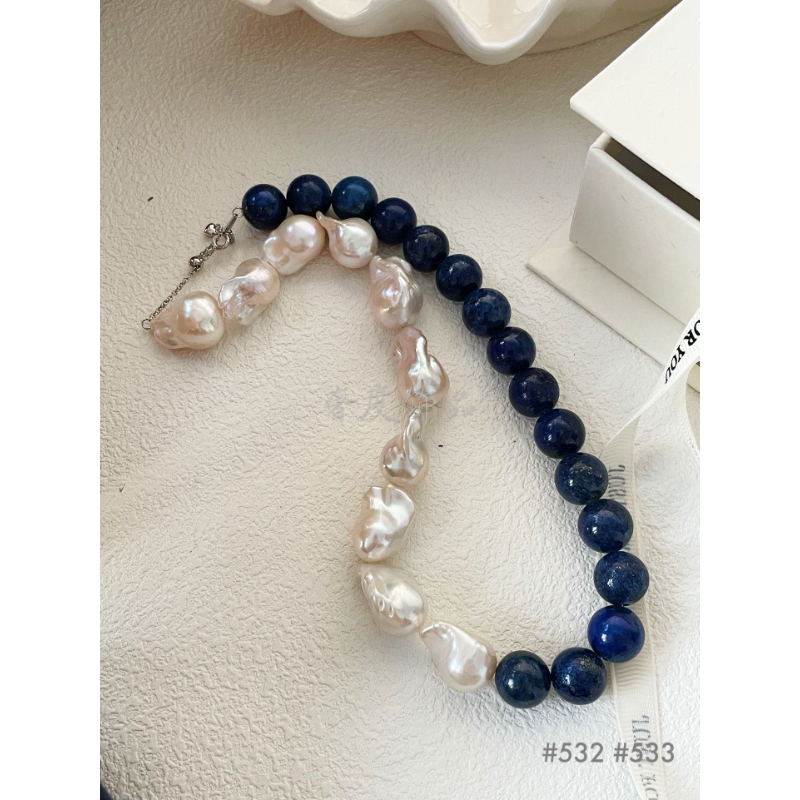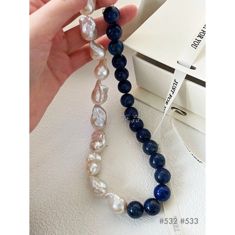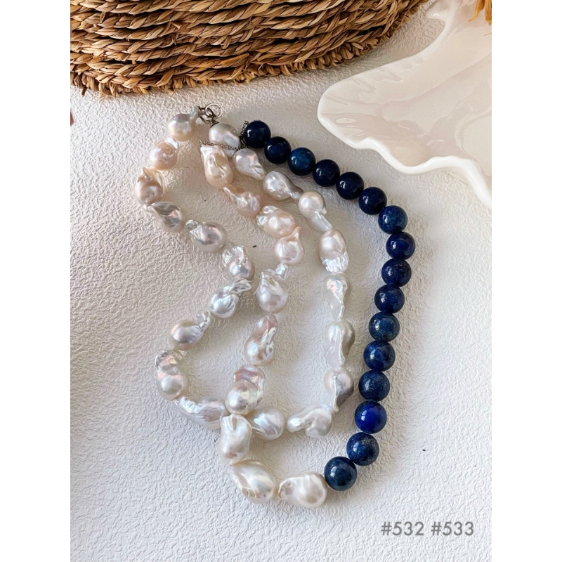 • Gemstones: Natural Lapis Lazuli + Baroque Pearls.